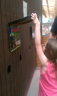 Here is a fun little activity you can do with your child called Touch and Tell which stretches along a portion of the park after the picnic area. It has several fun lift the flap types of games to play and even a touch and guess game to figure out what is hiding in the hole behind the wood. Here is a peek at one my daughter was playing.