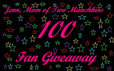 I am so excited to do this giveaway for you. You deserve it! 100 fans, WOW! Since we have grown so much since I first began to put the giveaway together at 100 Fans I have decided to add a surprize. I will be adding another mystery prize to the giveaway! This means there will be TWO winners instead of just one! Okay, lets go!This giveaway is hosted by Jenn, Mom of Two Munchkins.